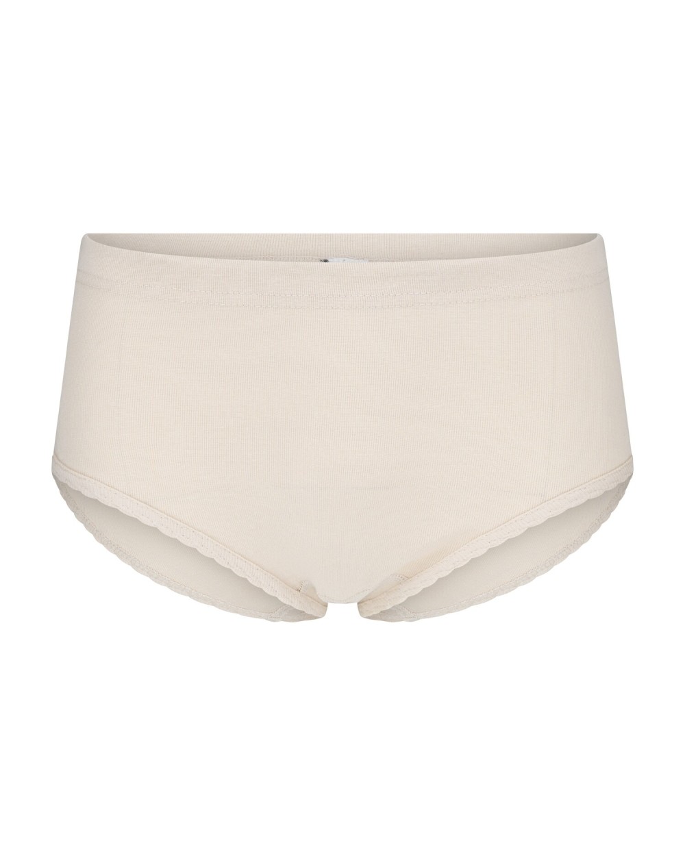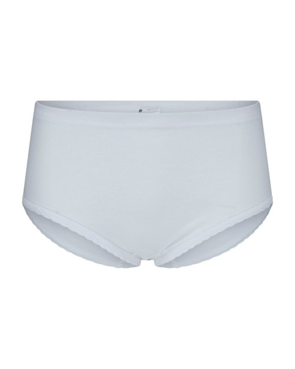 Dames slip van 100% katoen. De slip bevat geen zijnaden en is aan de bovenzijde omgezoomd met een tunnelelastiek De pijpen zijn afgewerkt met een zacht elastisch schulp boordje. Maten: 38 t/m 54