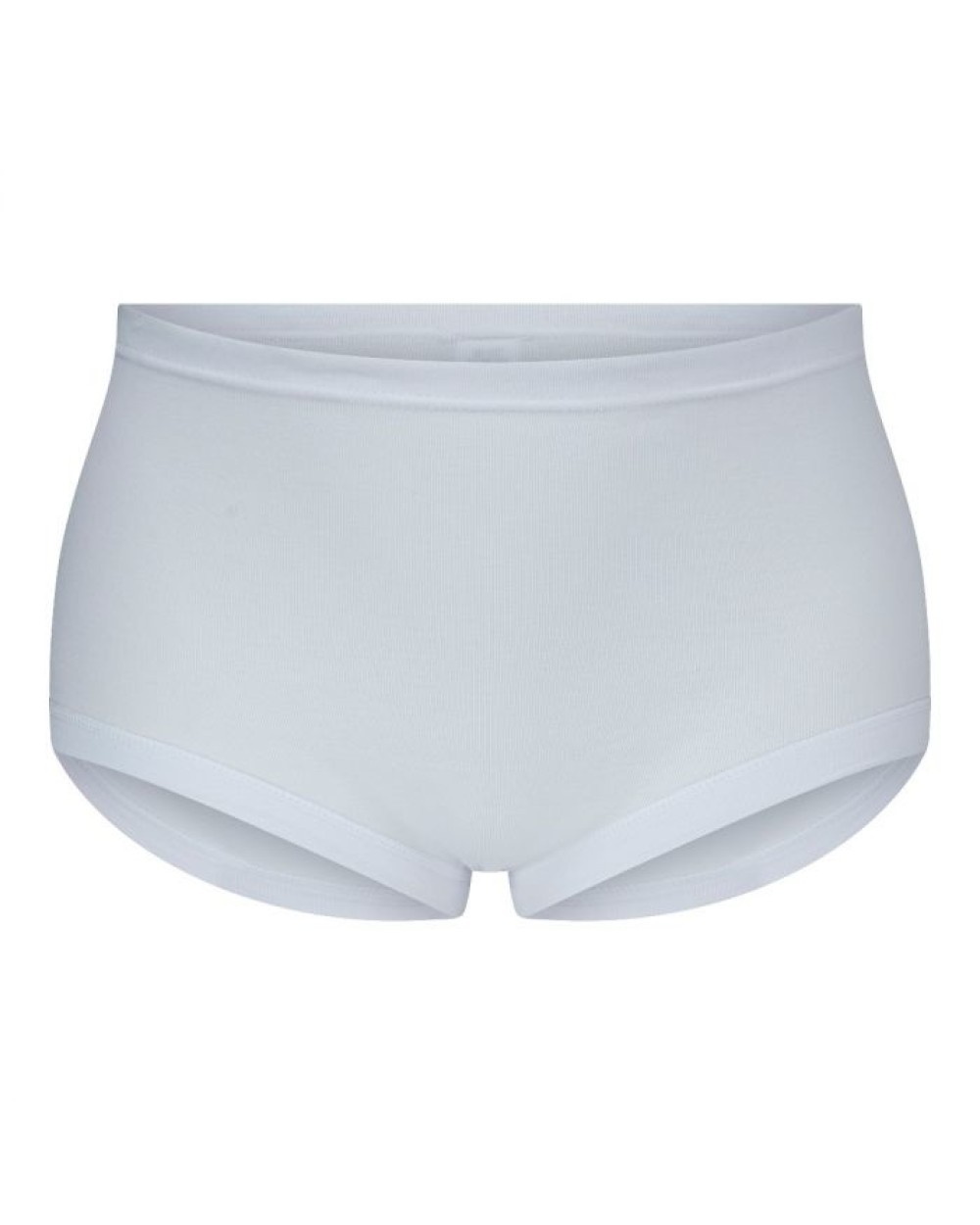 Dames slip van 100% katoen. De slip bevat geen zijnaden en is aan de bovenzijde omgezoomd met een tunnelelastiek. Het elastiek is vervangbaar. De pijpen zijn afgewerkt met een zacht elastisch schulp boordje. Maten: 38 t/m 54